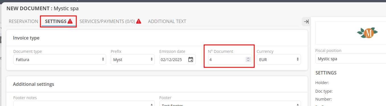If you want to restart the numbering of your documents at the beginning of each year, you have to leave the following box unchecked. On the contrary, check the box if you want the numbering to restart every year: