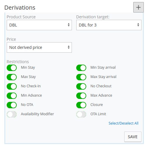 Attention: This derivation does not affect the availability, but only the price. The two products, the one from which the price is taken and the one in which the price is derived, could represent different room categories. For example the Suite double use, could always have a price equal to +15% more than Double standard.