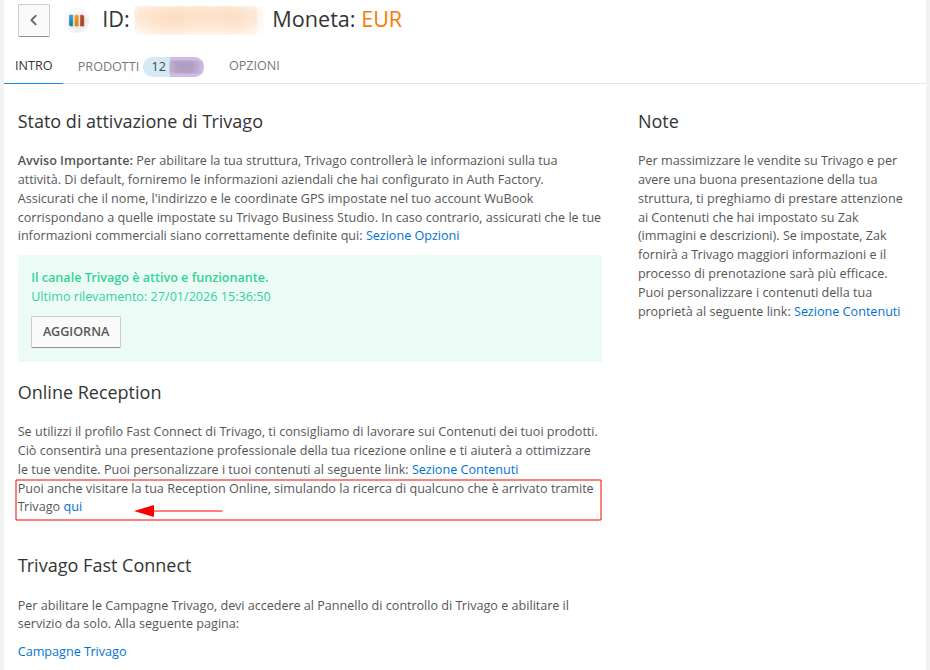 - In the INTRO section of the Trivago channel, you will find a link to check how your Online Reception appears on the Trivago interface.