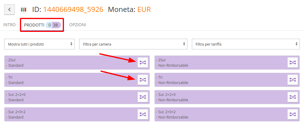 In the “PRODUCTS” section, you will find all your accommodations created on ZaK, multiplied by the various rates you have. Click on the icon to enable the products and rates you want to display on Trivago: