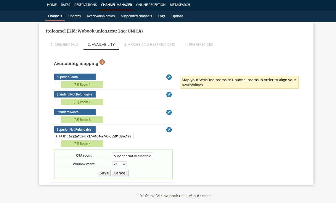 This step is crucial for aligning the Channel Manager's room inventory with Italcamel's.