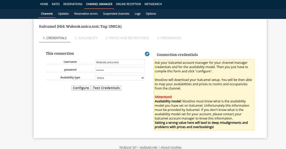 Selecting an incorrect availability value will result in a significant misalignment between prices and availability, dramatically increasing the risk of overbooking and pricing alignment issues. We recommend contacting your Italcamel account manager to confirm the correct model before proceeding.