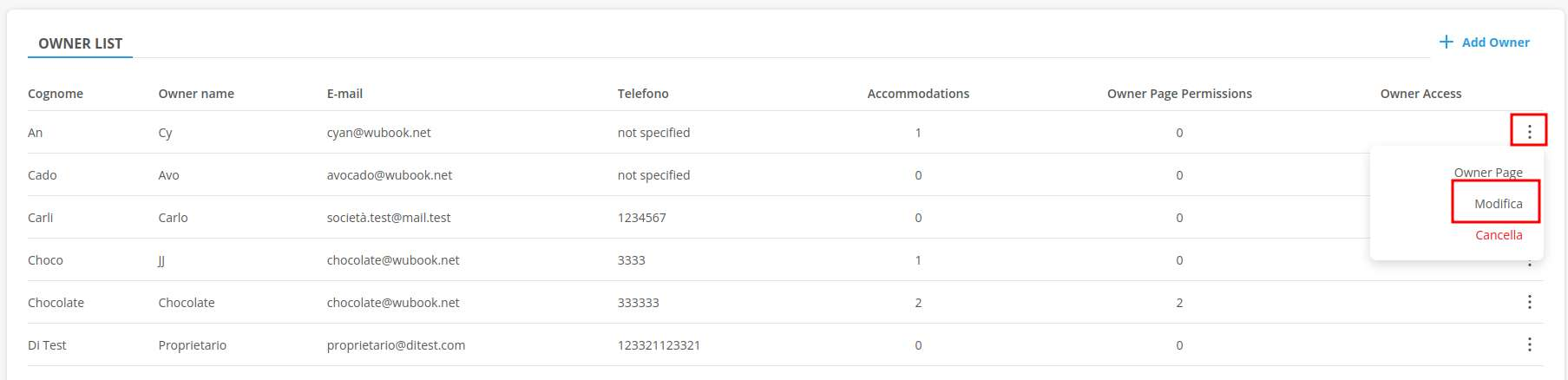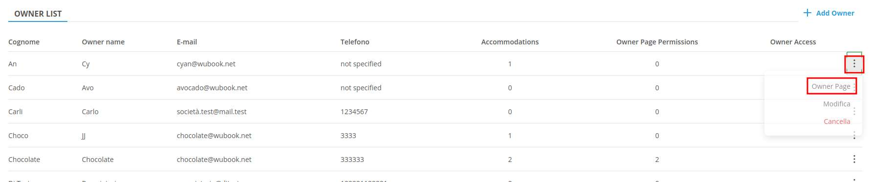 You can access the settings for these pages from the individual Owner's information: