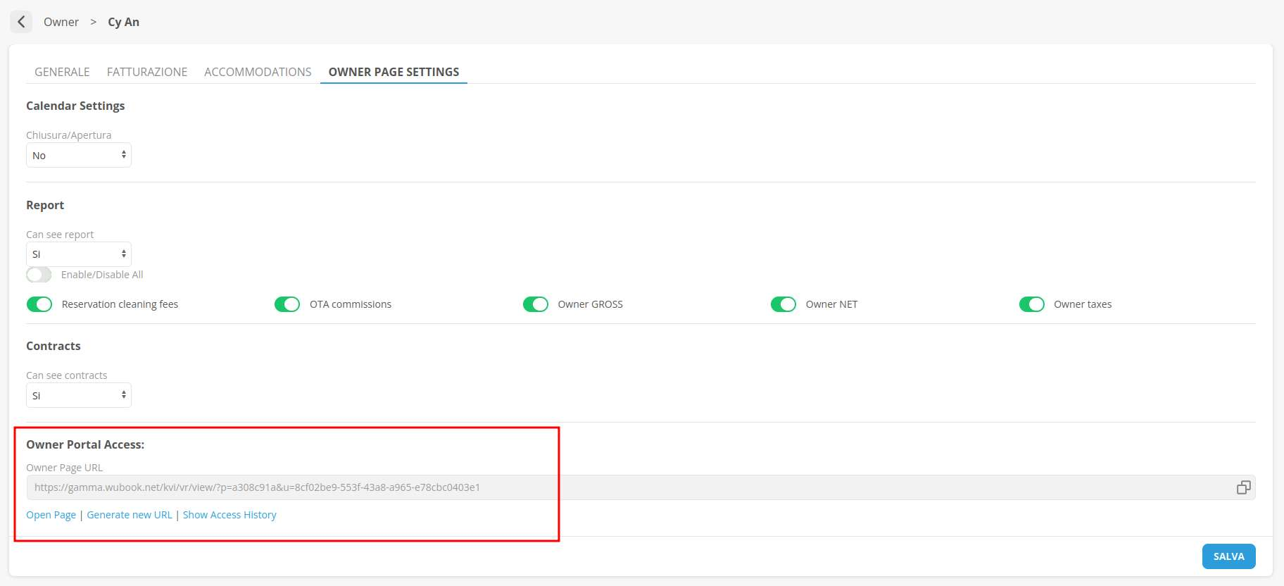 The Property Manager can share the page with the owner or regenerate the link via the appropriate section in the settings: