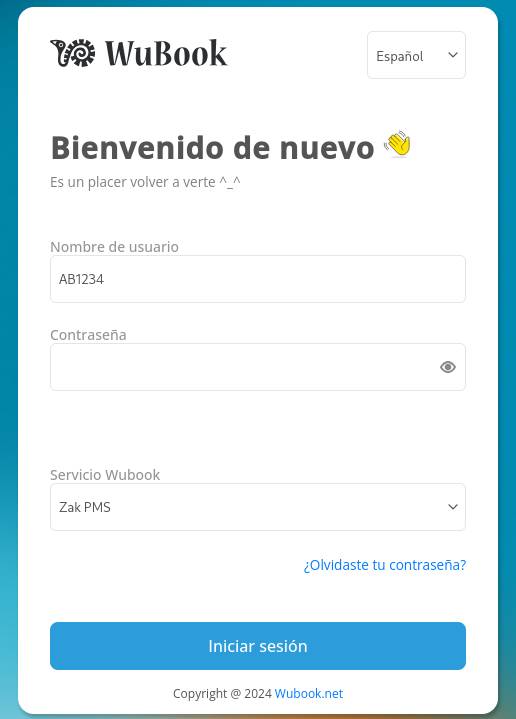 Nivel de acceso a la cuenta: credenciales utilizadas para iniciar sesión en WuBook.