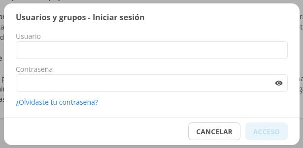 Usuario personal (Usuarios y Grupos / ZaK Team) cuando la cuenta ya se encuentra abierta y se solicita acceso a una sección en particular.