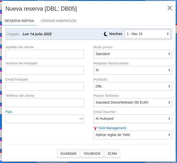 Si haces clic en un espacio libre, podrás agregar una nueva reserva: