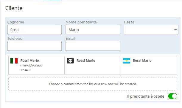 Cuando escribas en uno de los campos del huésped, el sistema mostrará automáticamente las posibles coincidencias ya disponibles en tu base de datos. Y si seleccionas un huésped ya registrado, Zak te mostrará sus reservas anteriores.