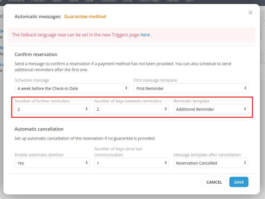 - La cancelación automática de la reserva si el huésped no la garantiza después de X días: