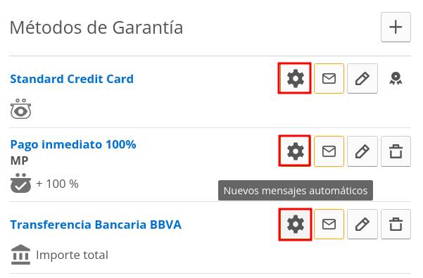 Junto a cada método de garantía, encontrarás un icono de engranaje: