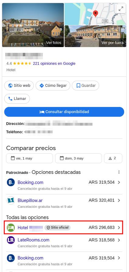 - Si lo deseas, puedes habilitar productos/tarifas para Google diferentes a los de tu motor de reservas.