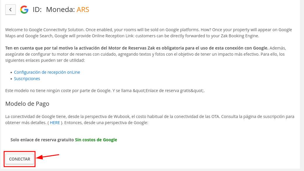 - ¿Está WuBook configurado como proveedor en la configuración de tu perfil de Google?