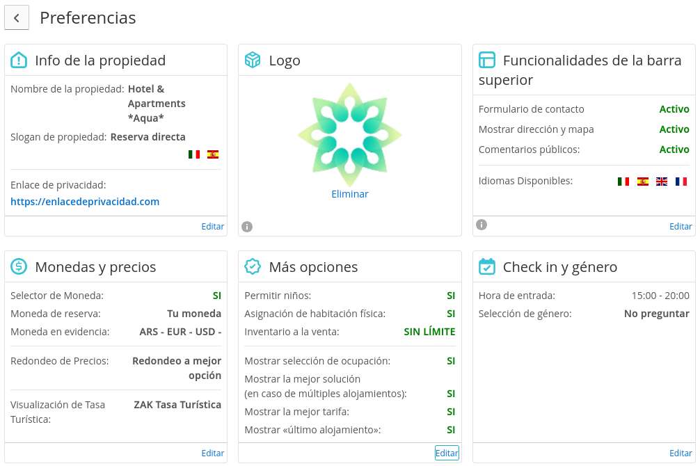 ↳ Enlace: ZaK > Puntos de Venta > Motor de Reservas > Preferencias