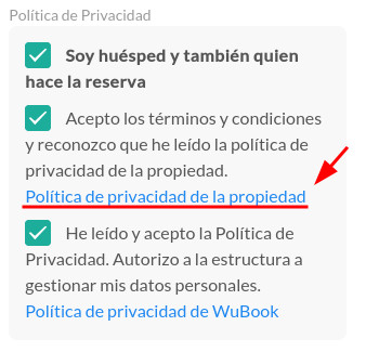 • un enlace a tu política de privacidad, que se mostrará en el último paso del proceso de reserva