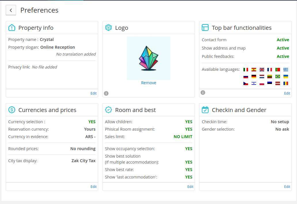 ZaK - Motor de Reservas: Preferencias