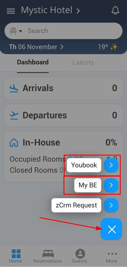 - Opción de realizar el check-in/check-out tanto a nivel de habitación como por huésped individual;