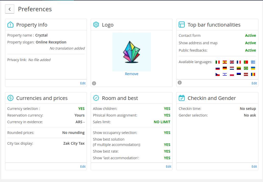 - les langues dans lesquelles vous souhaitez autoriser le processus de réservation. Bien entendu, toutes les descriptions que vous saisissez (pour les chambres, les forfaits, les extras, les politiques, etc.) devront être traduites par vos soins dans toutes les langues choisies.