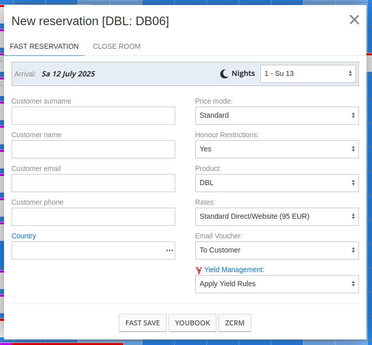 Se clicchi all'interno di uno spazio non occupato da un soggiorno, puoi inserire una nuova prenotazione:
