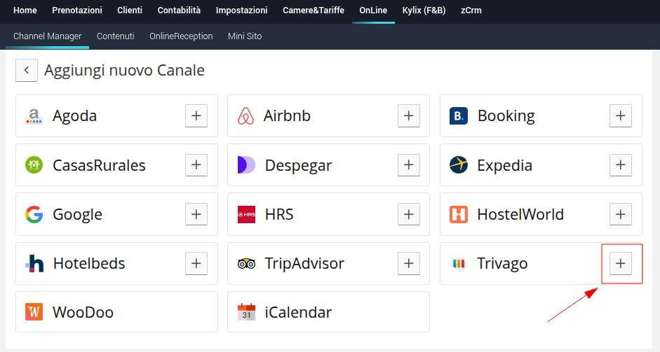 Per disattivare Trivago è sufficiente eliminare il canale in ZaK (dal menu Online>Canali), cliccando su "rimuovi". Ricorda inoltre di sospendere la campagna dal portale Trivago Business Studio, alla sezione Rate Connect.