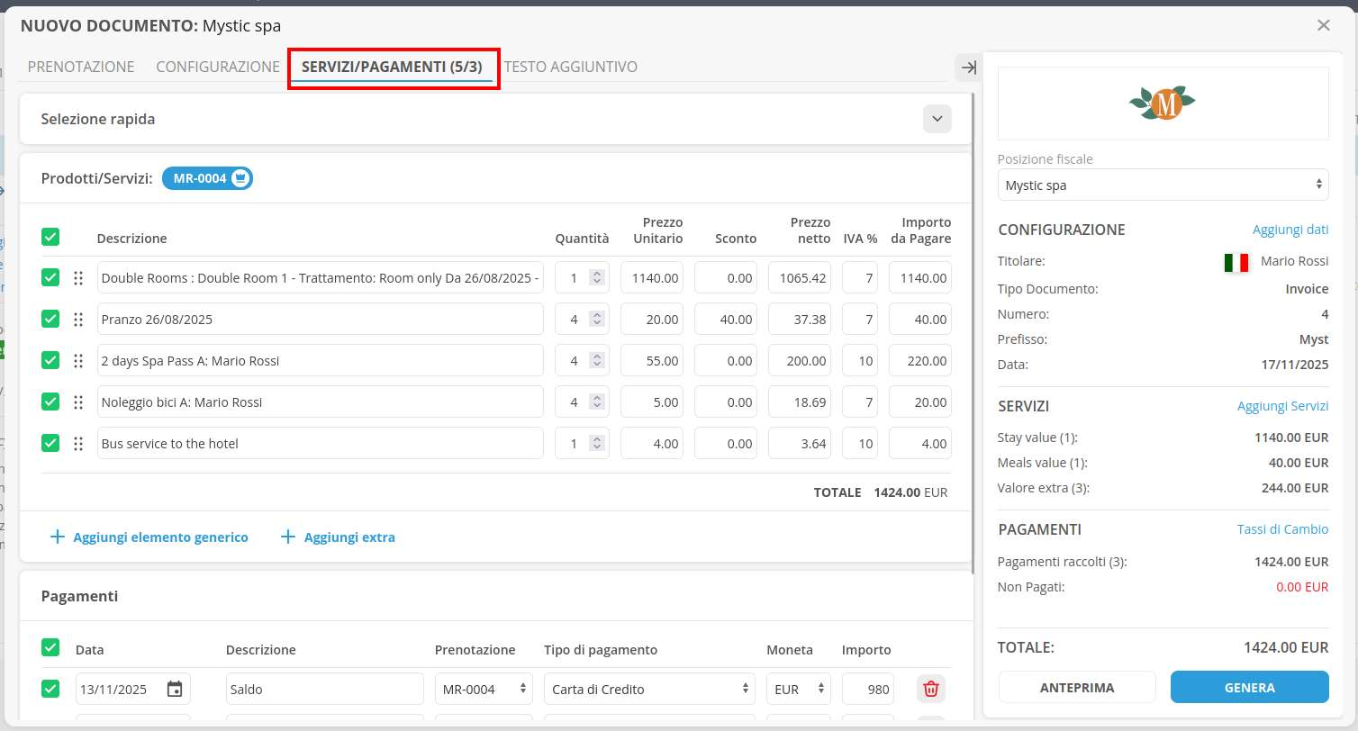 ti permette di emettere fatture, sia legata a una prenotazione che NON