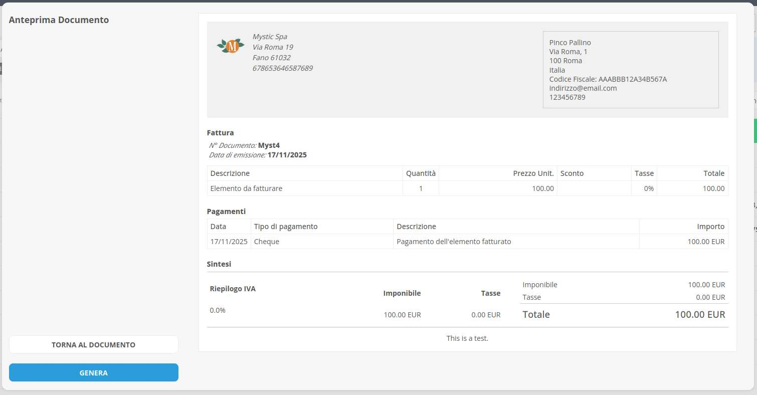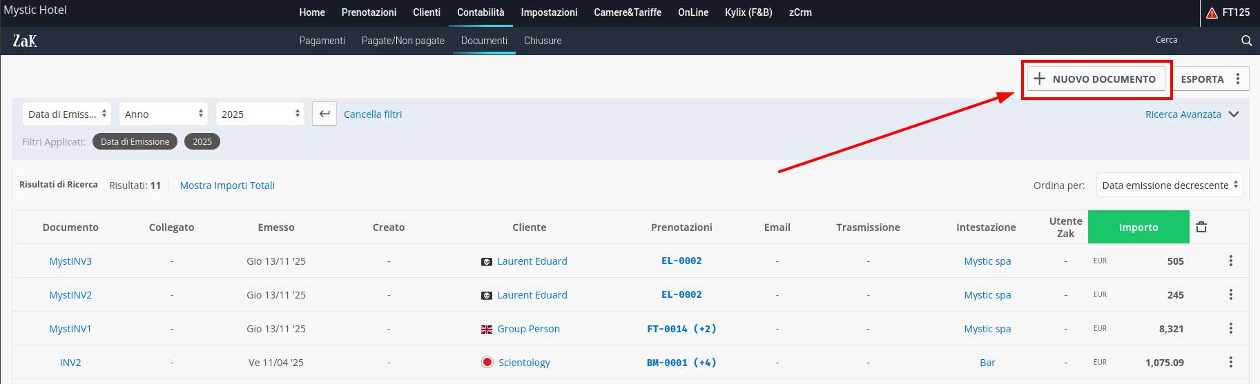 caso avessi più intestazioni) e che tipo di documento vuoi emettere. Poi