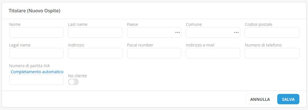 creare e salvare l'intestatario come ospite dall'apposito pulsante: