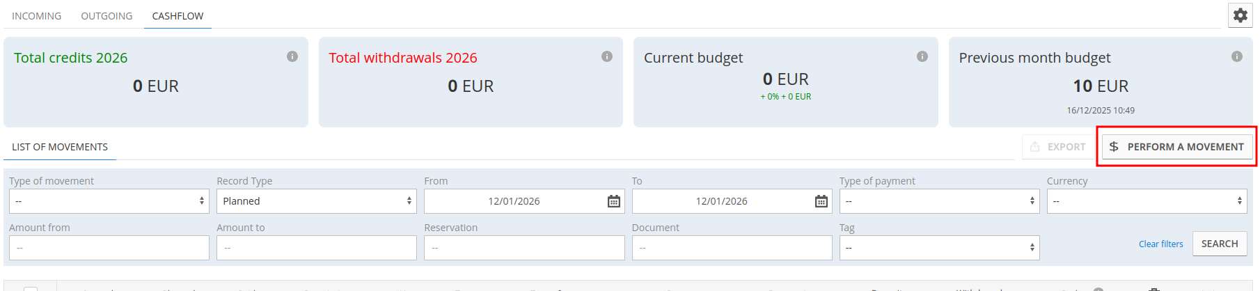 Tramite la sezione CashFlow, puoi registrare pagamenti slegati da prenotazioni e documenti: