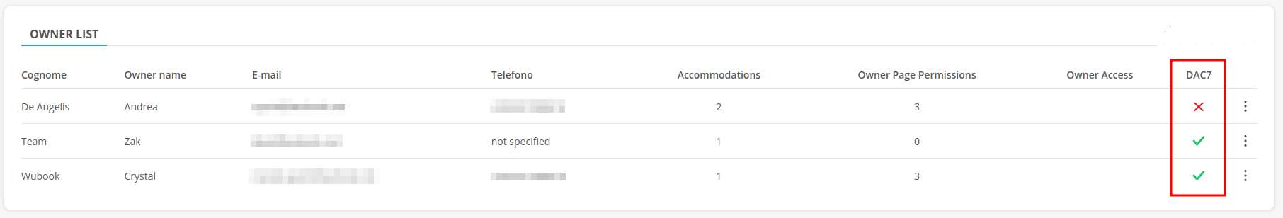 Inoltre, nella sezione dedicata ai proprietari, è visibile a colpo d'occhio se alcuni dei dati necessari per generare report DAC7 sono mancanti
