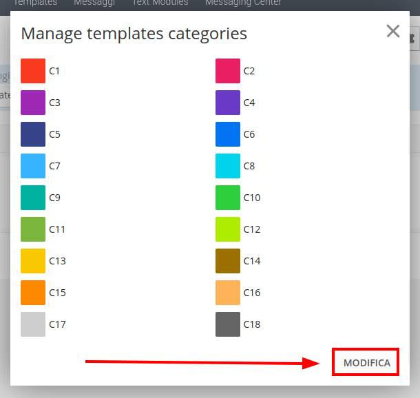 Each text template created can be arranged in one of 18 available categories, each of them individually customizable,
